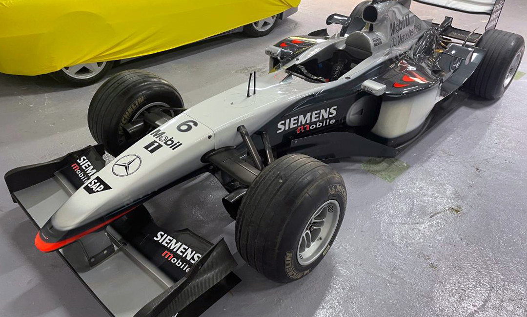 Adrian Newey designed Chassis MP4/17A-02, as raced throughout the 2002 F1 season by David Coulthard and Kimi Raikkonen. Complete car, with original 3.0L Mercedes-Benz FO110M V10 engine. Visible in the South of France.